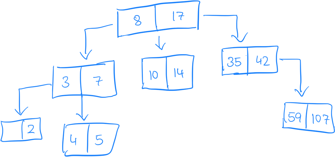 And that is what a B-Tree is. It's a balanced tree where each node can have n keys with n + 1 children. You can have 4-5 trees or even 1000-1001 trees. It's up to the implementer to decide.